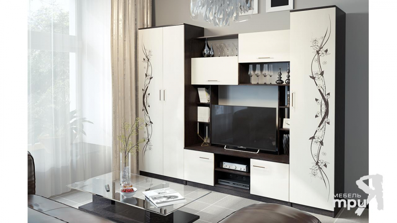 Стенку "Венера " можно назвать настоящим символом утонченности и элегантности.Такая мебель способна подчеркнуть эстетичность любого современного интерьера.Гостиная "Венера" изготовлена из ЛДСП соответствующего всем стандартам качества;центральная секция с тумбой под ТВ и с секциями за распашными дверями и нишами,боковыми полками секциями с откидными дверями.Внутреннее наполнение шкафа: штанга для одежды и полка.