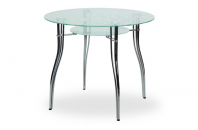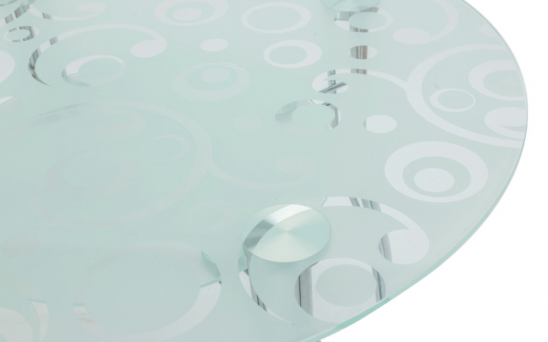 Стеклянный стол Феникс К- компактный обеденный стол из закаленного стекла прекрасное решение для маленькой кухни. Столешница из прозрачного стекла с матовым узором, нижняя полка выполнена из матового стекла. Подстолье и ножки выполнены из хромированного металла (двойное покрытие хромом). На ножках установлены регулировочные винты для дополнительной устойчивости на неровных поверхностях. Красивый и стильный стол круглой формы станет украшением вашей кухни.