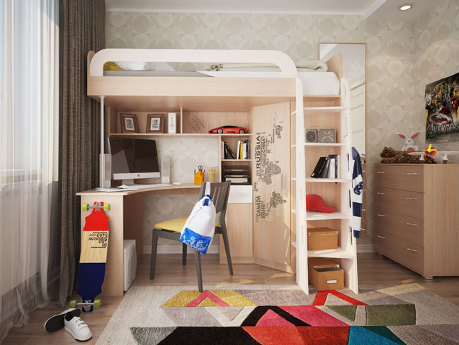 «Мультиплекс» - это супер-комплект для жизни и учебы ребенка! В нем есть большой стол, шкаф для одежды, полки и место для сна. Всё это в одном изделии! Он компактно располагается в комнате. А с дополнительной грифельной или маркерной дверью шкафа «Мультиплекс» превратится в уголок художника!