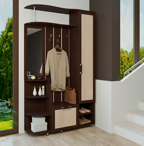 Обратите внимание на прихожую «Ксения II». Компактные габариты позволяют прихожей «Ксения II» найти для себя место даже в самом небольшом помещении. Причем, несмотря на небольшие размеры, в прихожую включены все необходимые элементы - полка для шляп, для аксессуаров, для обуви, шкаф, вешалки... Словом, «Ксения II» является отличным примером того, как должна выглядеть идеальная недорогая мебель для прихожей.