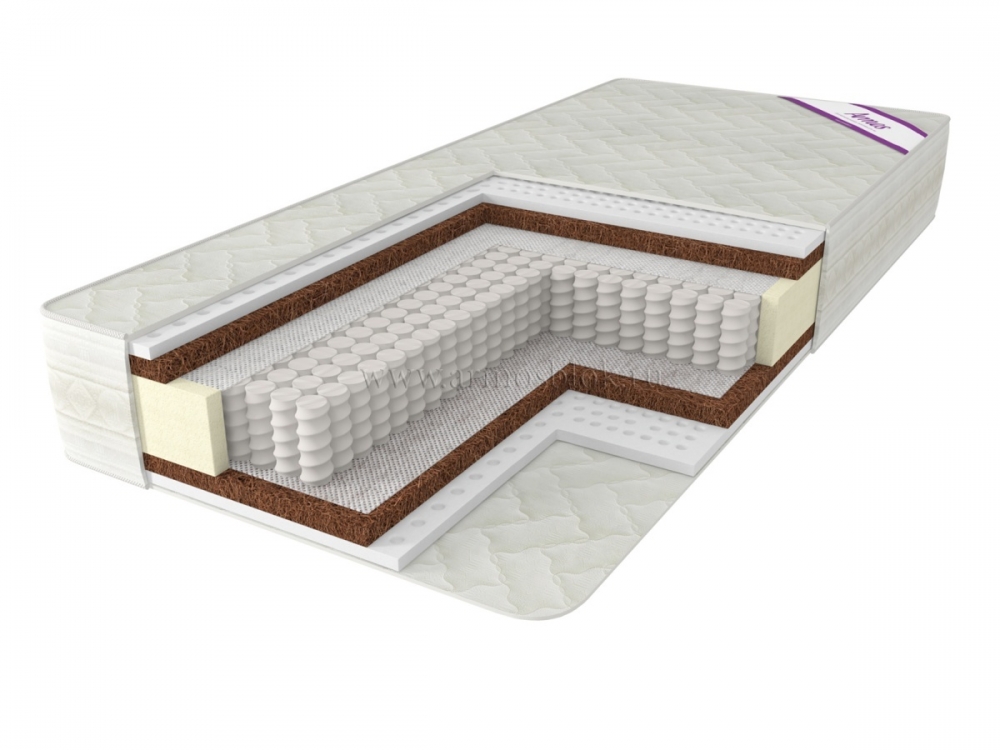 Состав: ортопена 40мм, войлок, блок независимых пружин, спанбонд, кокос 30мм, ватин, ортопена по периметру.