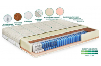 Матрас двусторонний. Одна сторона супер-жесткая, вторая - жесткая. Высота около 24 см. Допустимая постоянная нагрузка на одно спальное место 180 кг.Основные достоинства модели