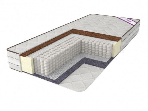 Кокос 10 мм., спанбонд, пружинный блок TFK, спанбонд, войлок., ппу по периметру, аэраторная 3D сетка, трикотаж.
