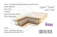 Ортопедический матрас «Дуэт» серии Элит компании Armos (Армос) изготовлен на основе независимого пружинного блока TFK. Пружины блока TFK работают независимо друг, от друга. Подстраиваясь под форму Вашего тела, они создают ортопедический эффект. Модель «Дуэт» это матрас с различной жесткостью сторон. Одна сторона матраса мягкая, вторая сторона - более жесткая. Спать Вы можете на любой из сторон. Для зимы больше подходит мягкая сторона матраса, так как она точно подстраивается под контуры тела и сохраняет тепло. Летом комфортней будет спать на жесткой стороне, она менее плотно прилегает к телу и обеспечивает циркуляцию воздуха, это дает ощущение прохлады. Жесткая сторона матраса состоит из блока кокосовой койры и ватина. Именно кокос придает поверхности матраса необходимую жесткость и упругость. Мягкость второй стороны обеспечивает пенополиуретановый блок, лежащий на слое кокосовой койры. От пружинного блока кокосовые блоки отделены спанбондом. Ортопедический матрас «Дуэт» усилен по периметру пенополиуретановыми бортами и способен выдерживать нагрузку до 100 кг на спальное место.