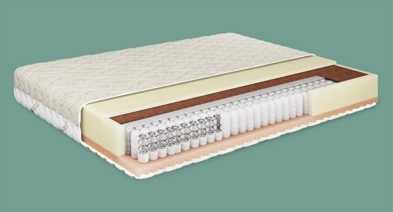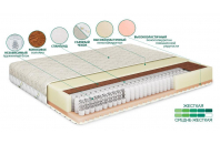 Матрас двусторонний. Одна сторона жесткая, вторая - средне-жесткая. Высота около 24 см. Допустимая постоянная нагрузка на одно спальное место 180 кг.Основные достоинства модели