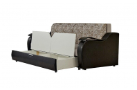 Практичный надежный диван с металлическим механизмом для ежедневного использования. Ортопедическое латное наполнение обеспечивают здоровый сон, образуя ровную просторную спальную зону без стыков и перепадов. В разложенном виде остается планка, которая исключает неприятные соприкосновения со стеной. Модель оснащена двумя ламинированными ящиками для белья, что позволит разместить несколько комплектов постельных принадлежностей. Мягкое и бесшумное раскладывание обеспечивают каучуковые колесики, не повреждает покрытие пола. Конструкция модели позволяет проводить влажную уборку пола не передвигая мебель. Третья выкатная часть механизма за счет укладки приспинных подушек в изножье образует «ЕВРО» спальное место (2000*2100).