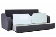 Практичный надежный диван с металлическим механизмом для ежедневного использования. Ортопедическое латное наполнение обеспечивают здоровый сон, образуя ровную просторную спальную зону без стыков и перепадов. В разложенном виде остается планка, которая исключает неприятные соприкосновения со стеной. Модель оснащена двумя ламинированными ящиками для белья, что позволит разместить несколько комплектов постельных принадлежностей. Мягкое и бесшумное раскладывание обеспечивают каучуковые колесики, не повреждает покрытие пола. Конструкция модели позволяет проводить влажную уборку пола не передвигая мебель. Третья выкатная часть механизма за счет укладки приспинных подушек в изножье образует «ЕВРО» спальное место (2000*2100).