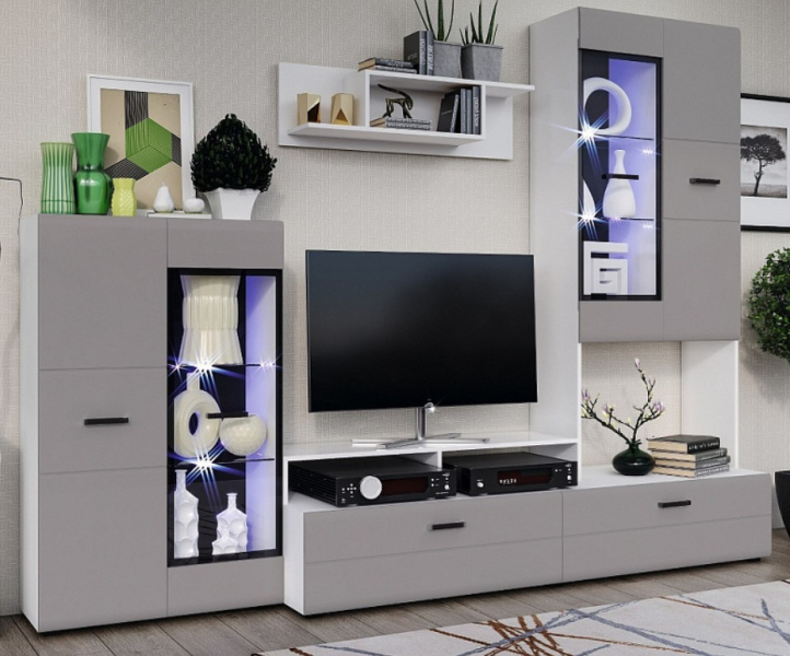 Гостиная Нэнси NEW вар.№3 браш текстура грей/ белый