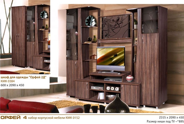 Набор корпусной мебели Орфей-4,производится фабрикой Калинковичский мебельный комбинат. Стенка, горка Орфей-4 придаст Вашей гостиной индивидуальность и элегантность. Стенка Орфей-4 – яркий пример того, что даже в небольшую гостиную можно принести гармонию и красоту, в которой так нуждается каждый из нас. Обратите внимание на наличие как открытых полок ,так и зеркальных, что позволяет удобно разместить нужные Вам предметы. Основной акцент сделан на зеркальном панно, которое зрительно расширяет пространство. Фурнитура обеспечит долговечную работу всех составляющих набора мебели, а материалы: кромка ПВХ на торцах деталей защитит их от сколов и придаст изделию эстетический вид. Осевые петли хромированные позволяют открывать стеклянные двери на 180 градусов.| Код товара: | 3844 |