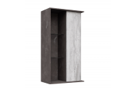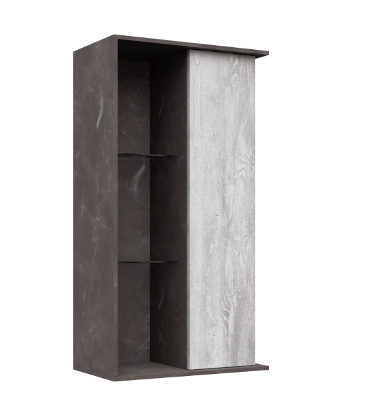 Детали шкафа навесного, которые в эксплуатации подвержены механическим повреждениям, облицованы кромкой ПВХ толщиной 2 мм. В правой части установлены две съемные полки из ДСП, в левой открытой части установлены две съемные стеклянные полки. Двери изготовлены больше корпуса со свесом для удобства открывания. Крепится шкаф к стене через отверстия в задней стенке. Петли без доводчиков.