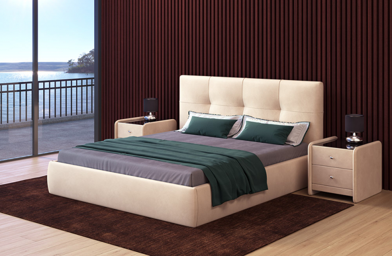 Прекрасная двуспальная кровать для комфортного сна и отдыха.Особый шарм изделию придают стёганные квадраты на спинке. Подчеркнуть эффектность такого декорирования помогает качественная обивка, за которой очень легко ухаживать и содержать в чистоте. Примечательно то, что царги кровати обиваются таким же материалом, что и изголовье. Такое дизайнерское решение придает единый стиль, подчеркивает строгость модели и ее роскошь.Огромным плюсом данной кровати является то, что она комплектуется подъемным механизмом, с помощью которого открывается доступ к вместительному бельевому коробу. Бельевая ниша обеспечивает удобное место для хранения постельных принадлежностей. Кроме того, наличие ящика для белья исключает необходимость покупки габаритных шкафов и комодов, которые занимают дополнительное место в комнате.