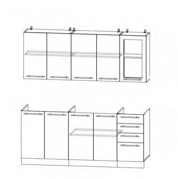 Эта модель является характерным представительницей традиционного или кантри стиля. Кухня Прованс- это отличный выбор для любителей классики. Спокойные приятные тона гарнитура придадут кухне величественный вид. Материал фасада – МДФ, материал корпуса и столешницы – ЛДСП. Поверхность легко очищается от любых загрязнений, корпус и столешница не разбухают от влаги и под действием температур.