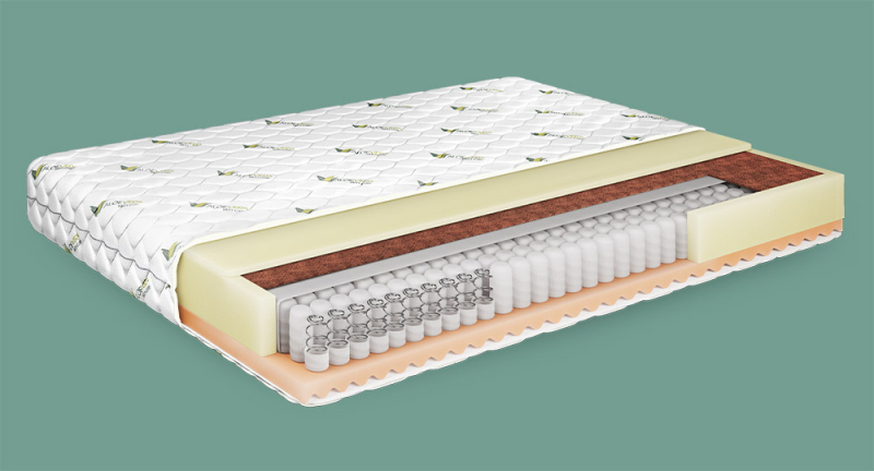 Анатомический двусторонний матрас «Люкс» - матрас с ортопедическим эффектом с блоком независимых пружин ANTINOISE в сочетании с высокоэластичным пенополиуретаном и слоем кокоса. Идеальный баланс пружблока, кокоса и высокоэластичного пенополиуретана для оптимальной поддержки позвоночника.