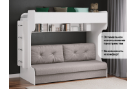 Нижний ярус в собранном виде представляет собой диван, на котором удобно отдыхать, читать или играть. Диван легко раскладывается, превращаясь в удобное спальное место. В основании дивана расположен блок независимых пружин (540 пружин), который гарантирует максимально комфортный сон.