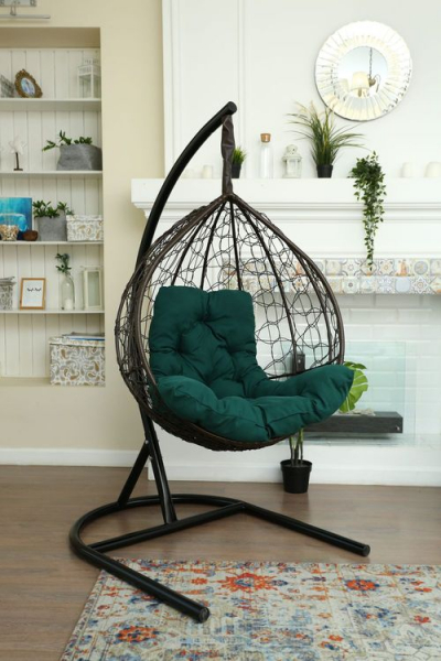 Стойка - стальная покрыта порошковой краской. Кокон - стальной каркас оплетён экоротангом. Подушка из Габардиновой ткани. Цвет стойки коричневый,цвет подушки шоколад. Высота стойки 195 см,высота кресла 105 см,ширина стойки 90 см,ширина кресла 90 см,глубина стойки 105 см,глубина кресла 65 см.Толщина трубы/стенки трубы, 35  мм .Диаметр трубы каркаса 5.1 см.