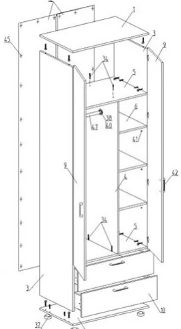 Шкаф 2- х ств. Ева с 2 ящиками 800*520*2300 Тира\Кадена вуд