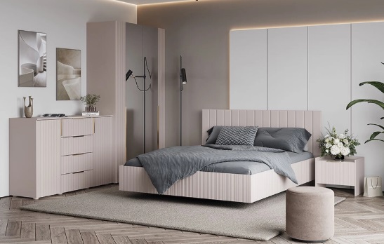 Стильная и современная модульная мебель для спальни Тефия выполнена из экологически безопасных материалов ЛДСП и МДФ. Огромный модульный ряд позволит обустроить любую комнату в вашем доме.Декор Тефия – это мягкий и приятный цвет кашемира, который создает ощущение комфорта и тепла. Этот цвет ассоциируется с благородством, изысканностью и роскошью.Светлый корпус и фрезеровка на фасадах, спинках кроватей, царгах прекрасно подойдут для интерьеров различных стилей. Лаконичный и светлый дизайн украшают тонкие профильные ручки золото Браш.