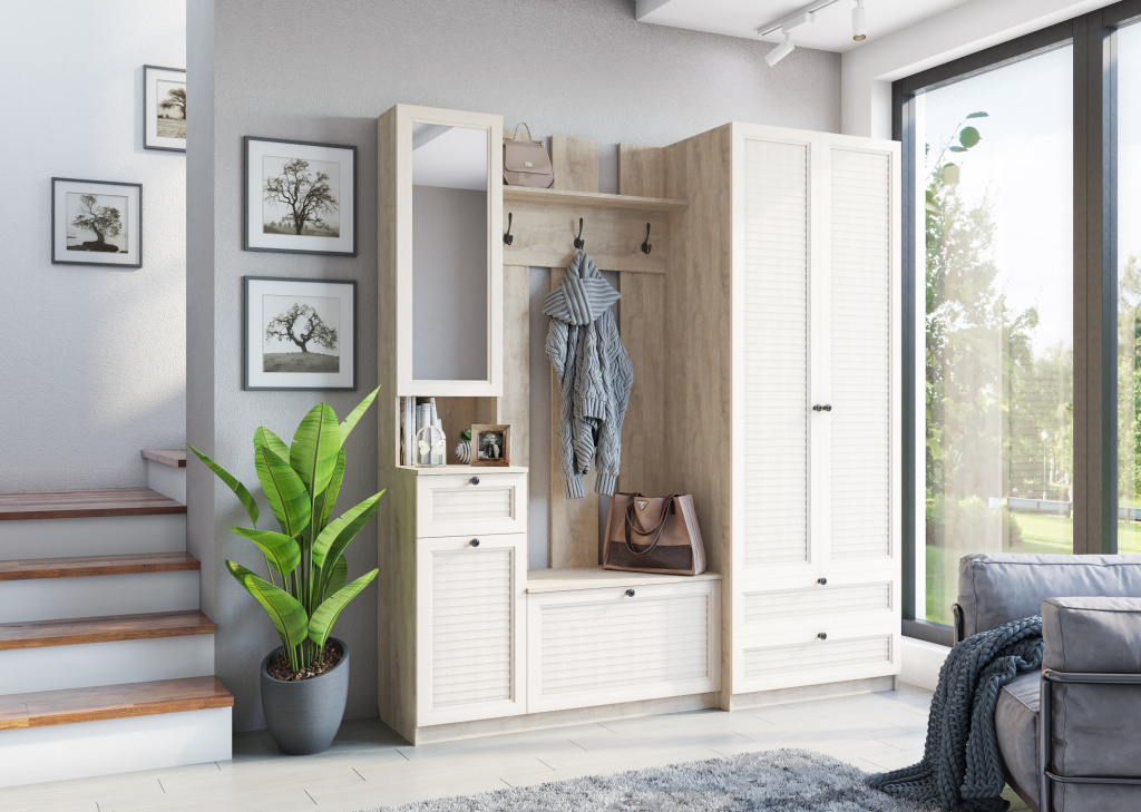 Прихожая  прекрасно подойдет для обустройства небольшой прихожей в квартире. Она значительно повысит уровень бытового комфорта.Набор мебели из качественного сырья представлен в благородном нейтральном цвете, который подойдет для любого интерьера. Светлая мебель идеально дополнит небольшое помещение, визуально расширит пространство, сделает помещение светлее.