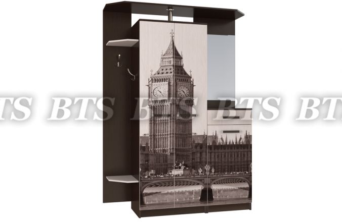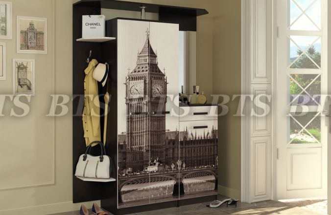 Мебель для прихожей Граф от производителя БТС мебель (в СПб). Малогабаритная мебель для вашего уютного и гостеприимного холла. Изысканный рисунок фотопечать Лондонский Биг-Бен на фасадных дверях. Данная модель задаст аристократический стиль вашей прихожей.| Код товара: | 36 |