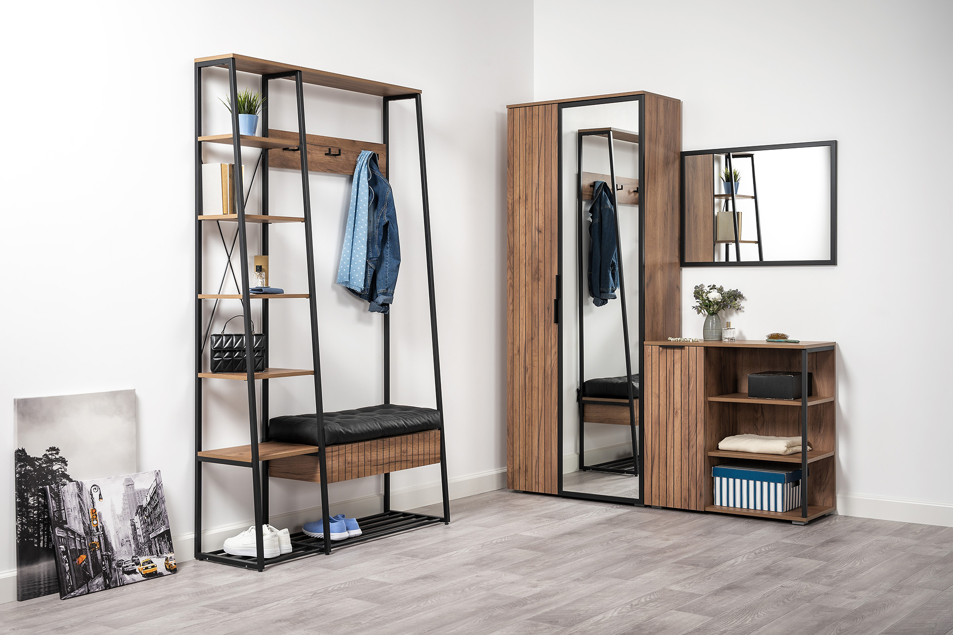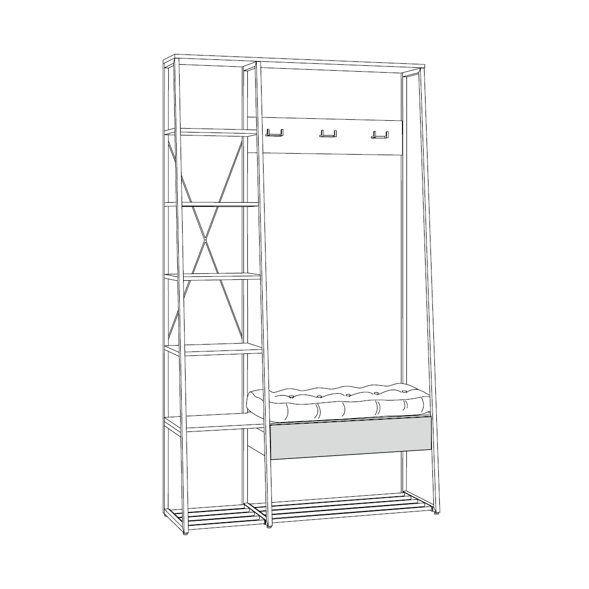 Компактная прихожая Гранд - практичное решение в стиле Лофт.Металлические стойки, открытые полки и вертикальные линии на фасадах создают ощущение легкости и воздуха.Выдвижная усиленная штанга в шкафу обеспечивает компактное хранение верхней одежды. Направляющие и петли оснащены доводчиками.Сиденье с мягким элементом позволит комфортно переобуться, а съёмная металлическая полка для обуви значительно упрощает уборку.