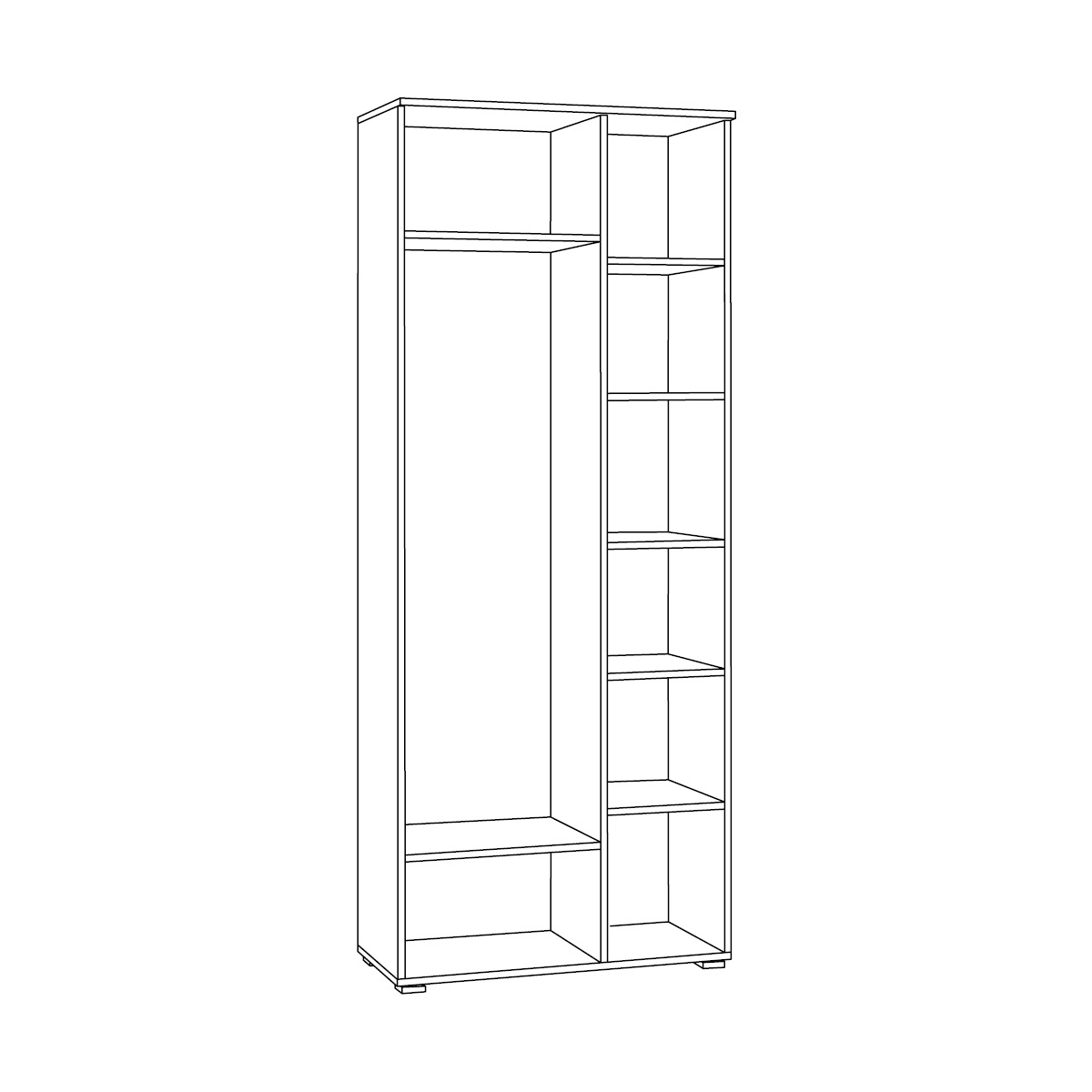 Габаритные размеры (Ш*Г*В) мм: комод: 820*384*815; шкаф: 820*387*2036; вешалка: 1160*386*2034; зеркало: 590*22*820Основные достоинства модели