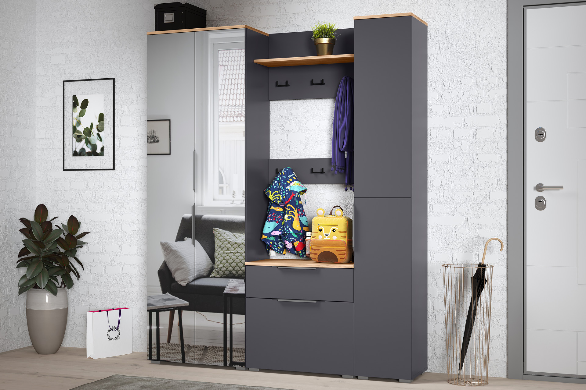 Зеркальные створки шкафа визуально расширяют пространство, а минималистичные алюминиевые ручки подчеркивают легкость и простоту линий.