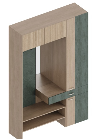 Прихожая с пеналом и антресолью ПРАВАЯ Ева Тира\ кадена вуд\палм грин 1500*450*2300