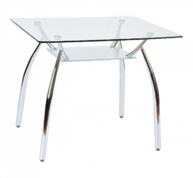 Стеклянный стол АТ-933S - компактный обеденный стол из закаленного стекла с безопасной кромкой, прекрасное решение для маленькой кухни. Столешница из прочного прозрачного стекла, нижняя полка выполнена из матового стекла. Красивый и стильный стол прямоугольной формы станет украшением вашей кухни. Стол также подойдет для дома, кафе, баров.
