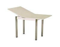 Простой компактный стол для небольших помещений.Благодаря механизму трансформации “книжка” увеличивается вдвое.Ножки изготовлены из хромированного металла.