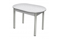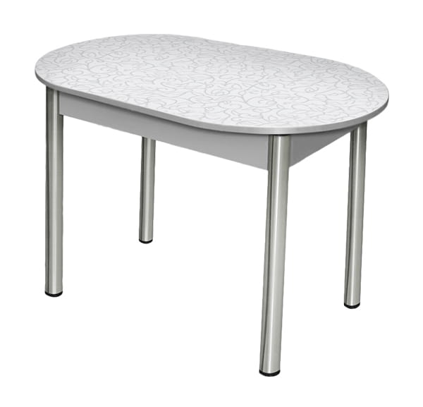 Простой компактный стол для небольших помещений.Благодаря механизму трансформации “книжка” увеличивается вдвое.Ножки изготовлены из хромированного металла.
