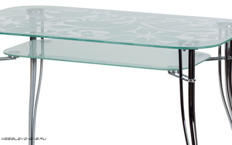Прозрачный стол с оригинальным матовым рисунком идеально впишется в любой интерьер Вашей кухни. Практичен в использовании, не заграмождает пространство. На ножках установлены регулировочные винты.