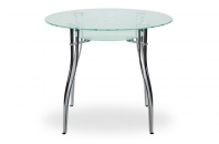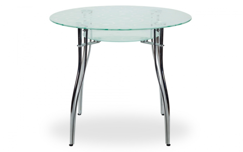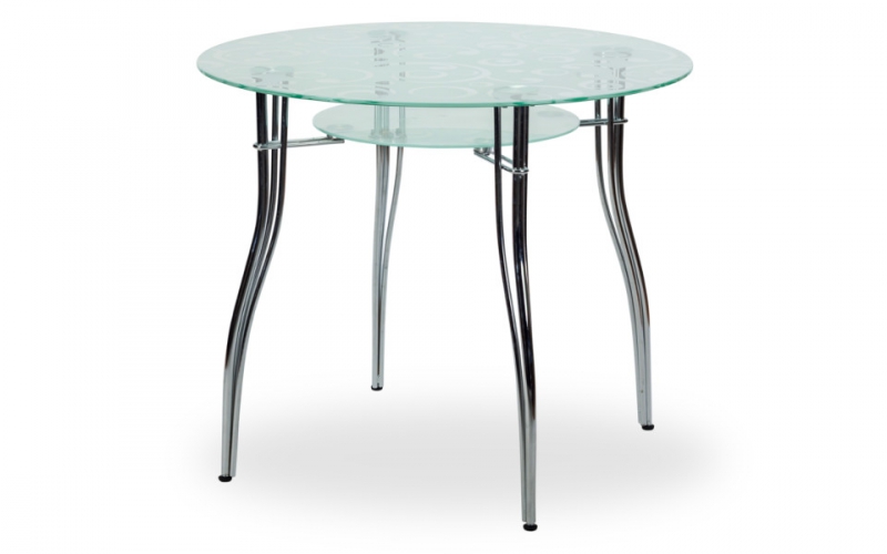 Стеклянный стол Феникс К- компактный обеденный стол из закаленного стекла прекрасное решение для маленькой кухни. Столешница из прозрачного стекла с матовым узором, нижняя полка выполнена из матового стекла. Подстолье и ножки выполнены из хромированного металла (двойное покрытие хромом). На ножках установлены регулировочные винты для дополнительной устойчивости на неровных поверхностях. Красивый и стильный стол круглой формы станет украшением вашей кухни.