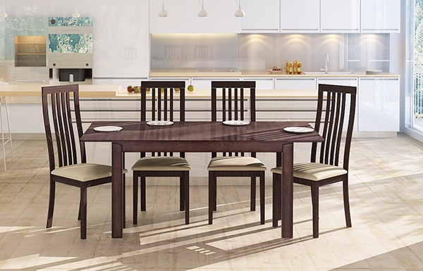 Обеденный стол DT-108 прекрасно дополнит интерьер небольшой кухни или гостиной. Стол отличается строгим лаконичным дизайном и надежной конструкцией из массива ценных пород древесины. Натуральные материалы, составляющие основу изделия, делают стол ценным предметом мебели, служащим украшением дома.