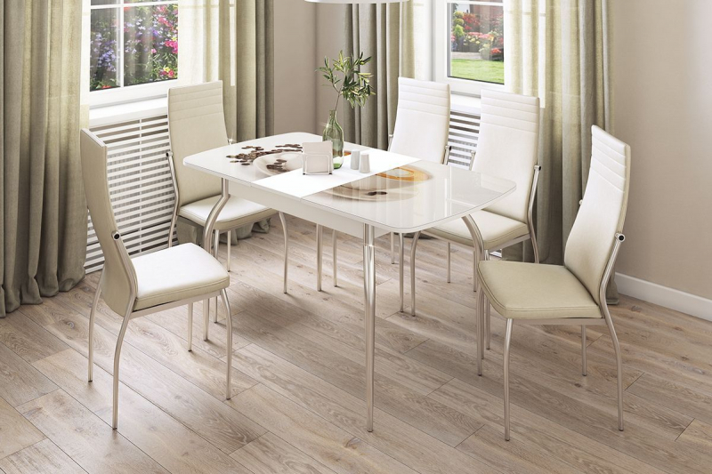 Большой стол – роскошь в наше время из-за маленькой жилой площади. Но есть замечательный вариант – стол «Танго». Компактный в сложенном виде и внушительный, если его разложить. Подходит как для будних завтраков-обедов-ужинов, так и больших праздников! Благодаря большому выбору цветовой гаммы впишется в любой интерьер.