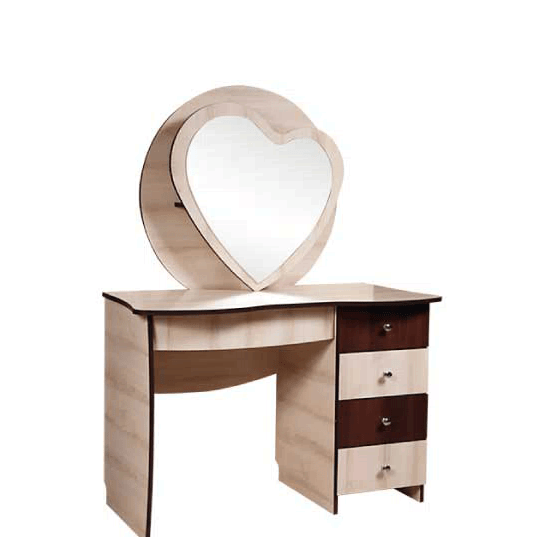 Туалетный стол 5Я Магия станет неотъемлемым атрибутом мебели, придающий спальной комнате ощущение романтизма и уюта.  Функциональный и  удобный столик изготовлен в цвете дуб шамони+орех шоколадный и включает: пять выдвижных вместительных ящиков, большую столешницу и стильное зеркало в форме сердца.