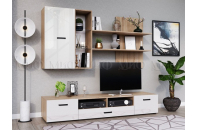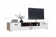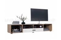 Тумба ТВ Нэнси New - стильная телевизионная тумба с двумя нишами и выдвижным ящиком под ними, и с двумя боковыми отделениями для хранения за распашными дверцами. В основании тумбы - низкие квадратные опоры.