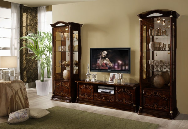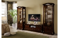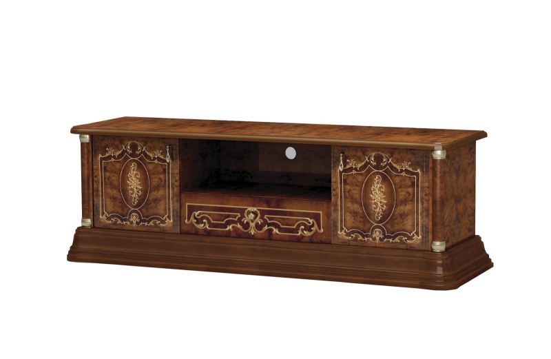 Тумба для ТВ является ярким, функциональным и эстетически привлекательным элементом коллекции «Роза». Изделие выполнено в классическом стиле в соответствии с общим оформлением гарнитура. Высококачественные материалы и стойкое покрытие поверхностей позволяют сделать тумбу под ТВ не просто частью обстановки интерьера гостиной, но и настоящим украшением, которое соответствует предпочтениям хозяев квартиры, а также местом хранения используемых в быту мелочей.