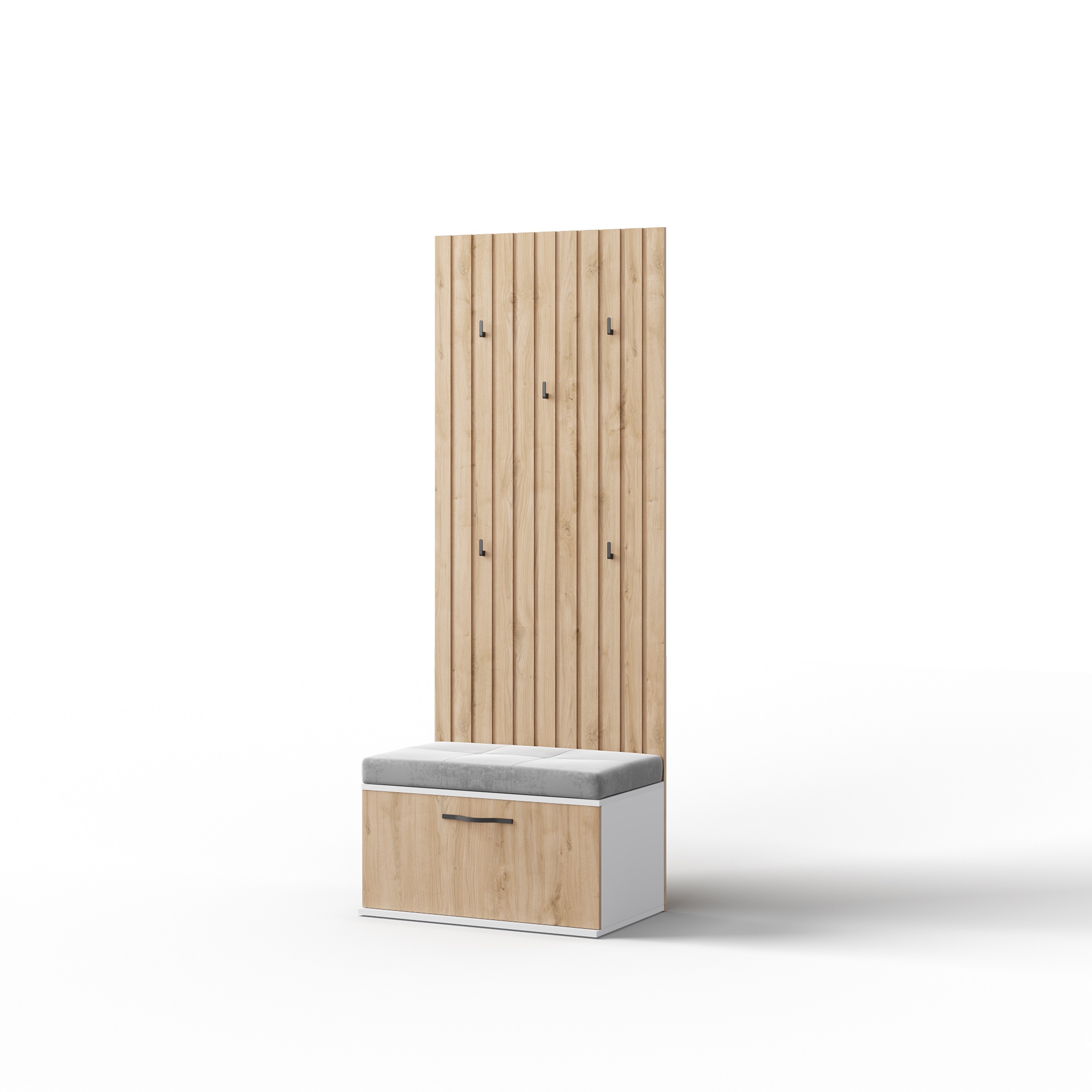 Вешалка Элана 2  дополнит вашу прихожую. Внизу обувница с откидной дверью и мягкая сидушка для комфортного переодевания обуви.