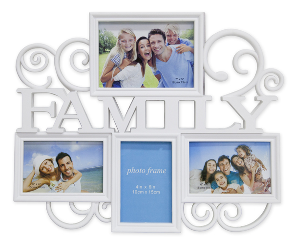 Большая фоторамка с надписью «Family» предназначена для четырех фотографий. Изделие окрашено в белый цвет. Дополнительную эстетику рамке придают витиеватые элементы. Такой предмет − это отличный способ украсить интерьер и окружить себя приятными воспоминаниями.