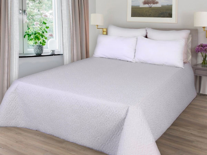 Жаккард - это материал с рельефными узорами, которые образуются при переплетении основных и уточных нитей и может быть как однотонным, так и цветным. За счет рельефности узора, материал переливается и смотрится в интерьере очень эффектно. Помимо декоративных свойств, жаккард отличается высокой износостойкостью и устойчивостью к деформации, рисунок жаккарда никогда не поблекнет, также этот материал прост в уходе. Покрывало из жаккарда украсит собой любой интерьер.