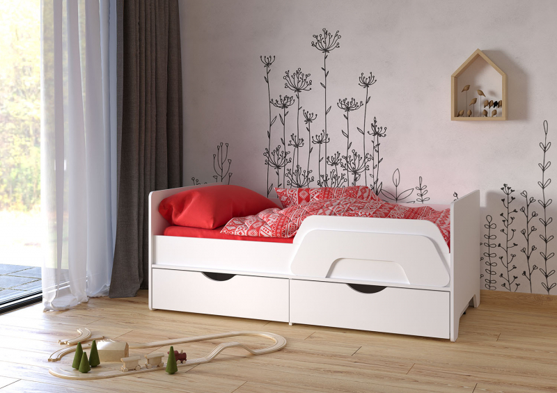 Кровать Уна 11.22 будет отличным дополнением интерьера уютной детской. Изделие предоставит достаточно удобное спальное место, где ребенок сможет отдохнуть и набраться сил после трудных и насыщенных дней. Кровать имеет два вместительных выдвижных ящика, созданных для хранения постельного белья и игрушек. Все элементы кровати предусмотрительно избавлены от острых углов и оформлены более толстой кромкой.