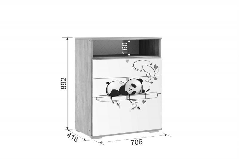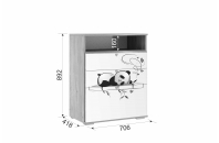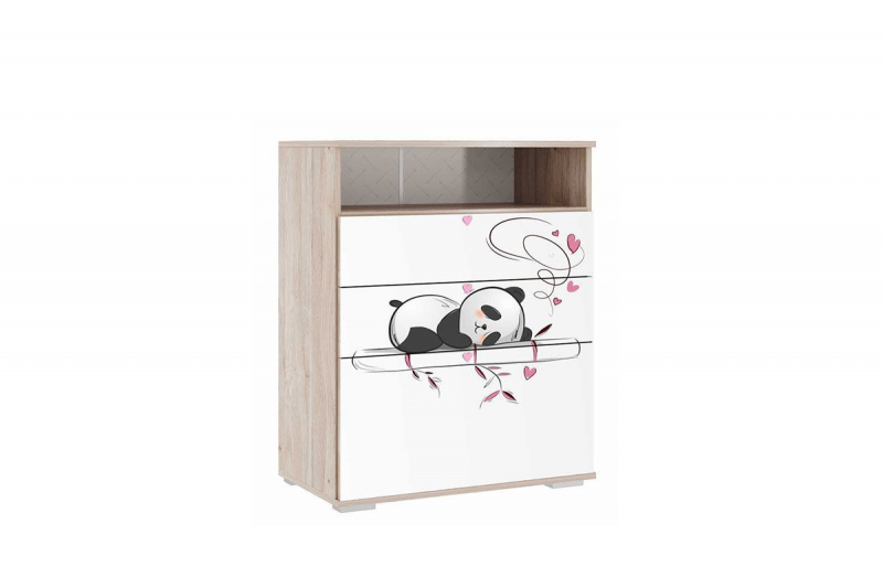 Стильный и модный комод «Панда». В комоде много ящиков в которые вы сможете разместить вещи. Ящики выкатные с доводчиками, обеспечат бесшумное закрывание фасадов. Модный и стильный рисунок на фасадах, придаст индивидуальность детской комнате, а тактильно приятные ручки-сердечки, очаруют каждую девочку. Принтерный рисунок устойчив к истиранию и ультрафиолету.