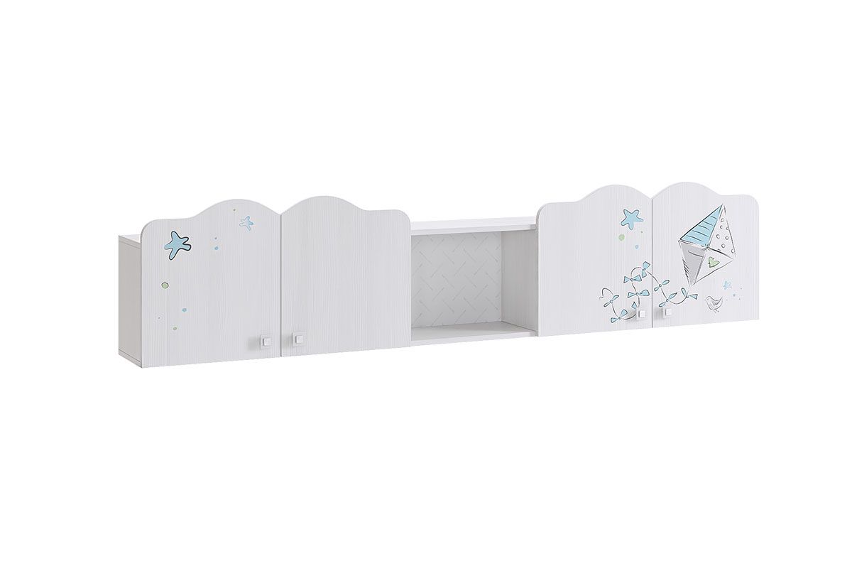 Стильная и модная полка детской «Бонни» - обрадует каждого ребенка. В закрытые шкафы и открытую нишу поместятся все учебники книги и сувениры.. Необычный принтерный рисунок на фасадах выдержан в общем стилистическом решении. Рисунок устойчив к истиранию и ультрафиолету. Рекомендуем комплектовать: с остальными модулями детской «Бонни»