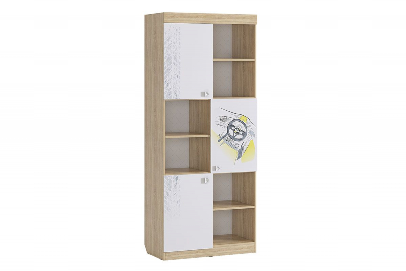 Стильный стеллаж «Форсаж» – мечта каждого мальчика. Стеллаж с открытыми и закрытыми полками идеально подойдет для книг, игрушек и мелочей. Эффектный принтерный рисунок на фасадах выдержан в общем стилистическом решении. Рисунок устойчив к истиранию и ультрафиолету.