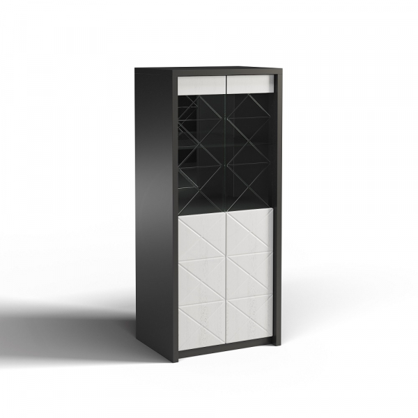 Стильный элегантный шкаф с витриной 2Д Монако выполнен в изысканном стиле и гармоничном сочетании цветов графит/дуб полярный. Каркас из ДСП толщиной 32 мм придает эффект добротности и надёжности конструкции мебели. Дверь изготовлена из МДФ плёночного и стекла с фацетом 20мм по двум длинным сторонам и с гравировкой. За дверью установлены одна съемная полка из стекла и две несъёмные. Функцию ручки выполняет фрезеровка выемка в торце фасада.