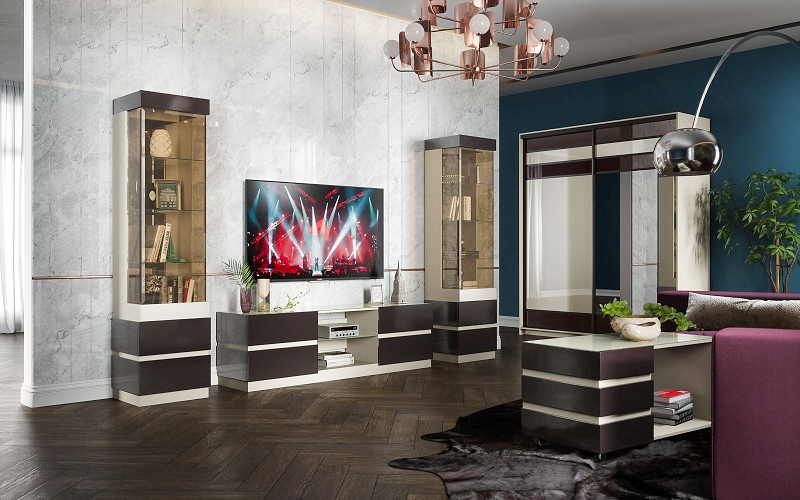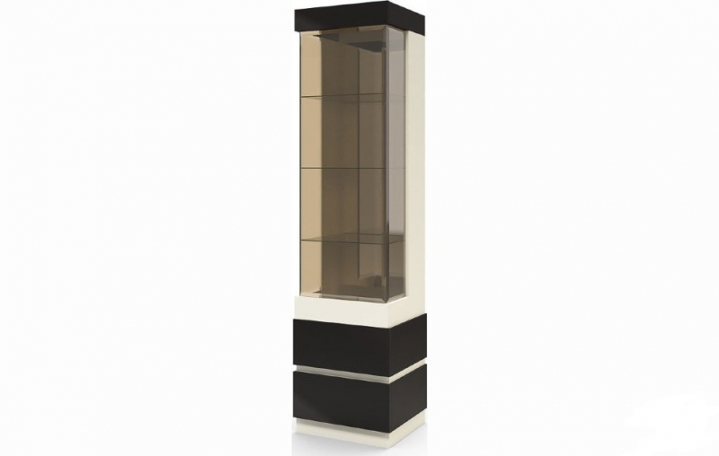 Шкаф с витриной П Хилтон оригинального изысканного дизайна станет изюминкой и украшением интерьера Вашей комнаты. Цветовое решение капучино светлый / мокко глянец. Внизу шкаф оснащен двумя ящиками на шариковых направляющих. Функцию ручки на накладках ящиков выполняет фрезеровка выемка в торце фасада. На боковых стенках закреплены декоративные накладки из МДФ пленочного в цвет фасада толщиной 8мм. Дверь витрины изготовлена из стекла цвет бронза с фацетом 20мм по двум длинным сторонам. Открытие двери осуществляется справа налево. За дверью установлены три полки из стекла 4 мм, за полками установлено зеркало. Стенки боковые изготовлены из ДСП и стекла цвет бронза с фацетом 20мм по одной длинной стороне. Шкаф с витриной Хилтон выглядит элегантно и нарядно.