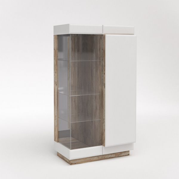 Нарядный шкаф с витриной П Роксет выполненный в гармоничном сочетании цветов дуб юккон / белый глянец, предназначен для создания стильного изысканного интерьера. Двери шкафа изготовлены больше корпуса со свесом для удобства открывания. Правая часть выступает вперед по отношению к корпусу, что создает 3Д эффект. За стеклянной дверью установлены съемные стеклянные полки толщиной 4 мм. За дверью из ДСП установлены несъемные полки. Для уменьшения уровня шума при закрывании стеклянной двери к деталям, соприкасающимся с дверью, клеится отбойник силиконовый. Открытие дверей осуществляется слева направо. Петли без доводчиков, задняя стенка изготовлена из ХДФ.