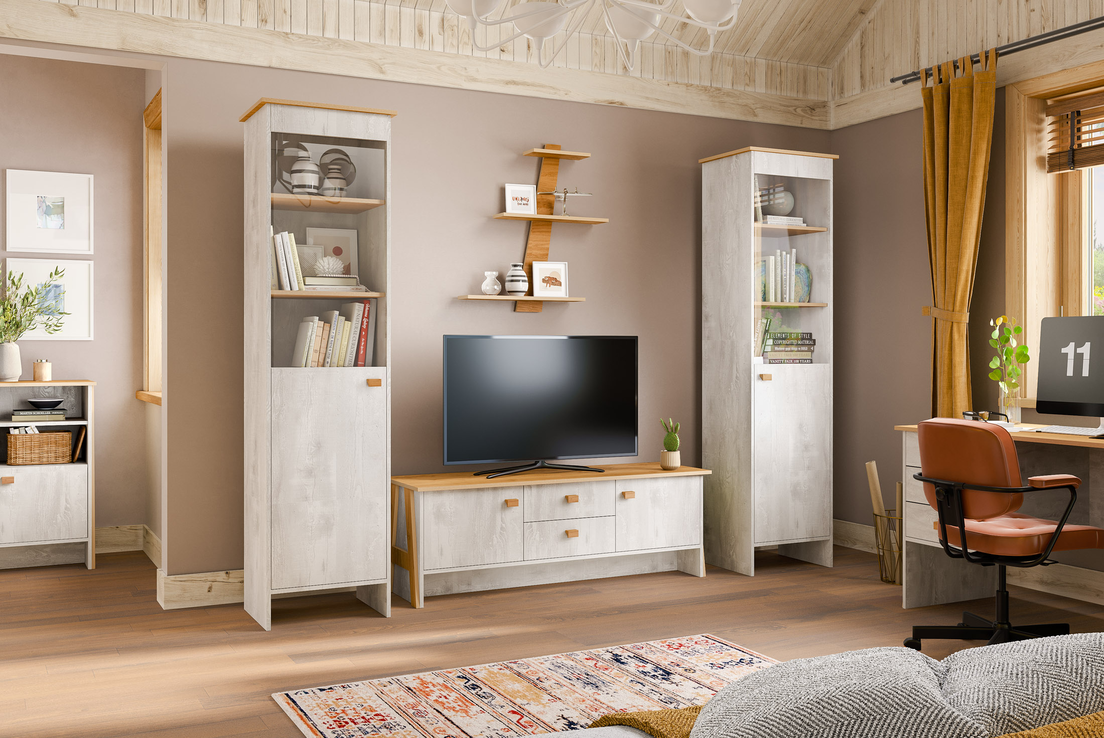 Компактные распашные шкафы-витрины "Скандинавия" с дверцами – это решение для уютной гостиной. Они выполнены в современном-скандинавском стиле – сочетают в себе функциональность и эффектный внешний вид: контрастные бежевого цвета ручки и фасады.