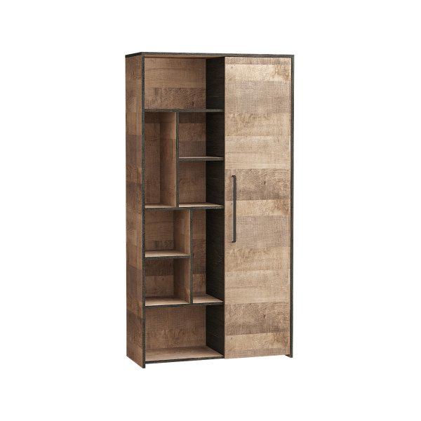 Шкаф-стеллаж Трувор 13.206 будет отличным дополнением интерьера любой комнаты. На открытых полках будут гармонично смотреться интересные и увлекательные книги, семейные фотографии, коллекции интересных предметов, оригинальные сувениры, статуэтки и детские поделки. За глухой дверцей можно хранить более ценных и важные предметы, а также одежду и белье. Индустриальная мебель Трувор выполнена в стиле лофт.