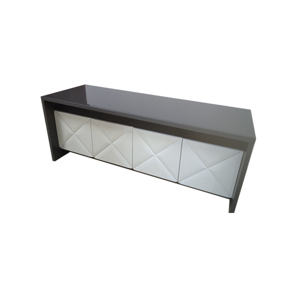 Стильная элегантная тумба 4Д Монако выполнена в цвете графит /дуб полярный. Каркас из ДСП толщиной 32 мм придает эффект добротности и надёжности конструкции мебели. Дверь изготовлена из МДФ плёночного. Петли GTV без доводчиков, задняя стенка изготовлена из ХДФ. Детали тумбы, крышка, боковые стенки, которые в эксплуатации подвержены механическим повреждениям, облицованы кромкой ПВХ толщиной 2 мм. На крышке установлено стекло эмалит. Дверь изготовлена больше корпуса со свесом для удобства открывания. Стекло эмалированное – это стекло, на одну из поверхностей которого наносится эмалевая краска и после её высыхания стекло подвергается закалке, обладая всеми свойствами безопасного закаленного стекла. Универсальная тумба с просторной столешницей подойдет, как для тумбы под телевизор, так и для хранения вещей и размещения предметов декора.